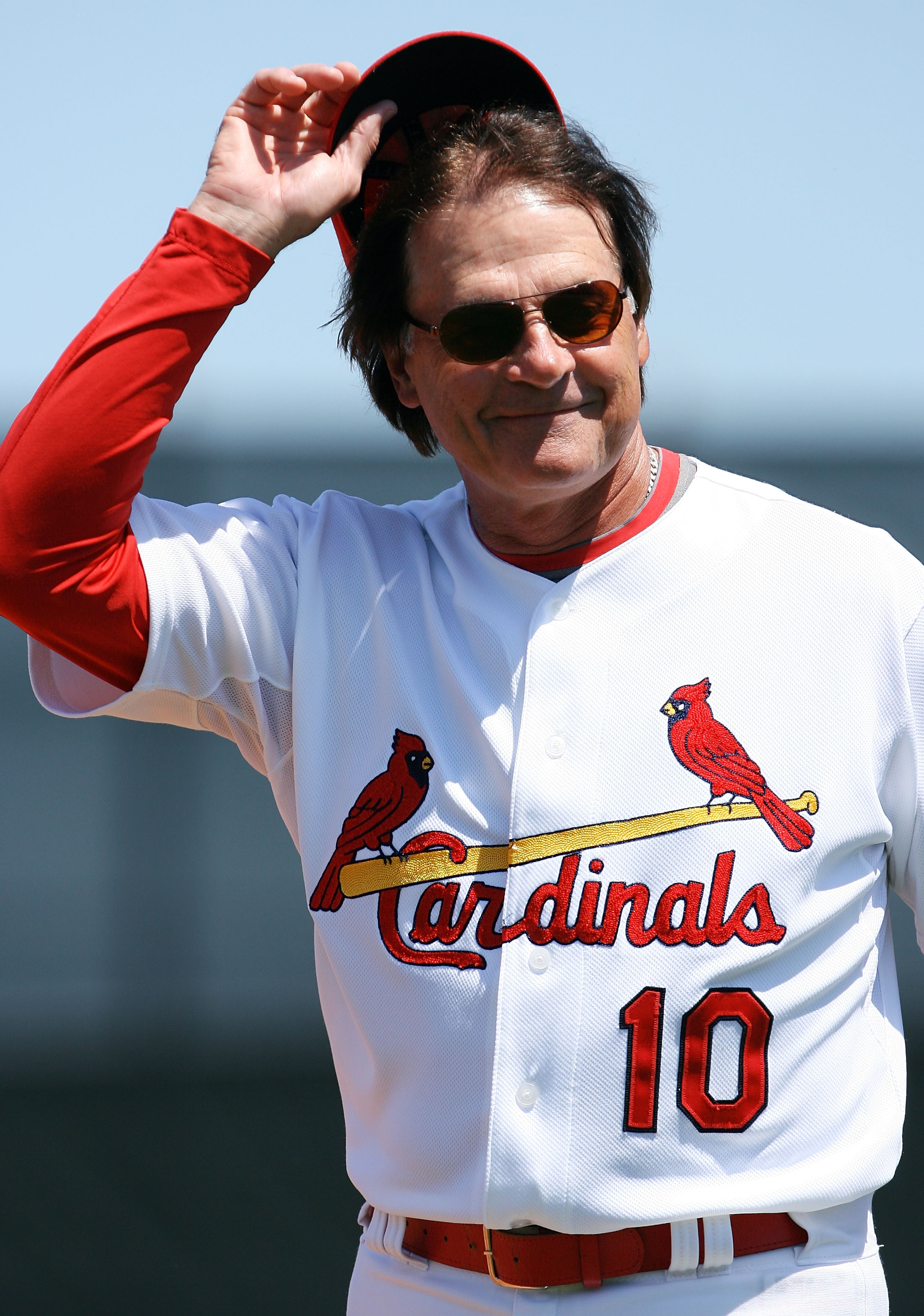 As the skipper of the Cardinals, TLR played the role of evil genius perfectly with the media and drove fans batty 99.99% of the time. But because St. Louis is first about baseball, that .01 is all anyone will remember about #10. I wanted to find a few different pictures of the famous scowl or even maybe one of the former Birds on the Bat farmhand (who knew!) but ultimately, we tip our cap to the manager just as much as TLR gave us literally everything he had.