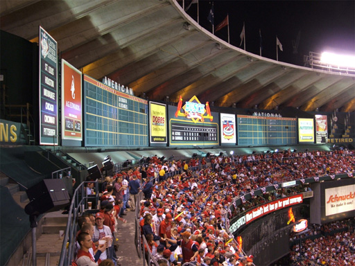 *Speaking of Edmonds, he was so good in center field but also at knowing where to crank his batting practice bombs. He once hit 6 straight homers into the same spot in the right field loge. I caught three of them before letting someone else get a couple. The highlight of the scoreboard was his catch and walkoff home run in the 2004 National League Championship series in Game 6. The noise that crowd made that night shook the stadium.