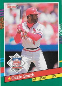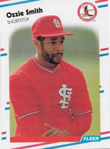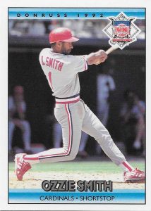 Last December, Alex Crisafulli of Chirps fame wrote a two-part article (part 1 here, part 2 here) on the top 10 Ozzie Smith ball cards and I was transported back to those days when I would go down to the local card shop and look around, buying various packs and hoping Osborne Earl was in them, or looking for a new Ozzie single in the glass cases that I didn’t have. Like Alex, I got many different ones (though if he got every major one, he might have topped me no pun intended–I could have sworn I had the ’85 Donruss he talks about but I can’t find it now). While I collected a lot of players, Ozzie was the top card (yes, that one was) that I focused on.