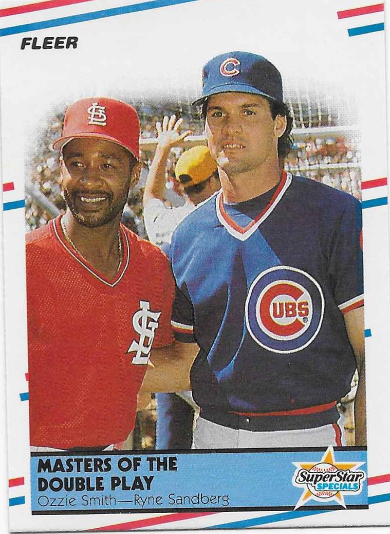 OK, let’s move on to Fleer. Alex had the ’87 Fleer in his writeup, so I won’t be using it. However, that was the first factory set I owned (which is another reason, as the Ozzie from that year is still in that box) and I remember tracking the price of it in the Beckett monthly magazine every month. I think it maxed at about $100 or so, which I thought was outstanding since I bought it at $20 or $25. Now you can get the full set and the update for $5.50 before shipping.