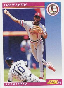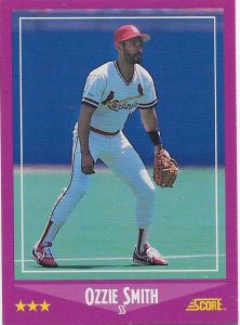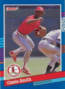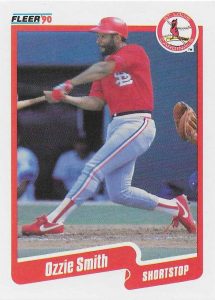 Last December, Alex Crisafulli of Chirps fame wrote a two-part article (part 1 here, part 2 here) on the top 10 Ozzie Smith ball cards and I was transported back to those days when I would go down to the local card shop and look around, buying various packs and hoping Osborne Earl was in them, or looking for a new Ozzie single in the glass cases that I didn’t have. Like Alex, I got many different ones (though if he got every major one, he might have topped me no pun intended–I could have sworn I had the ’85 Donruss he talks about but I can’t find it now). While I collected a lot of players, Ozzie was the top card (yes, that one was) that I focused on.
